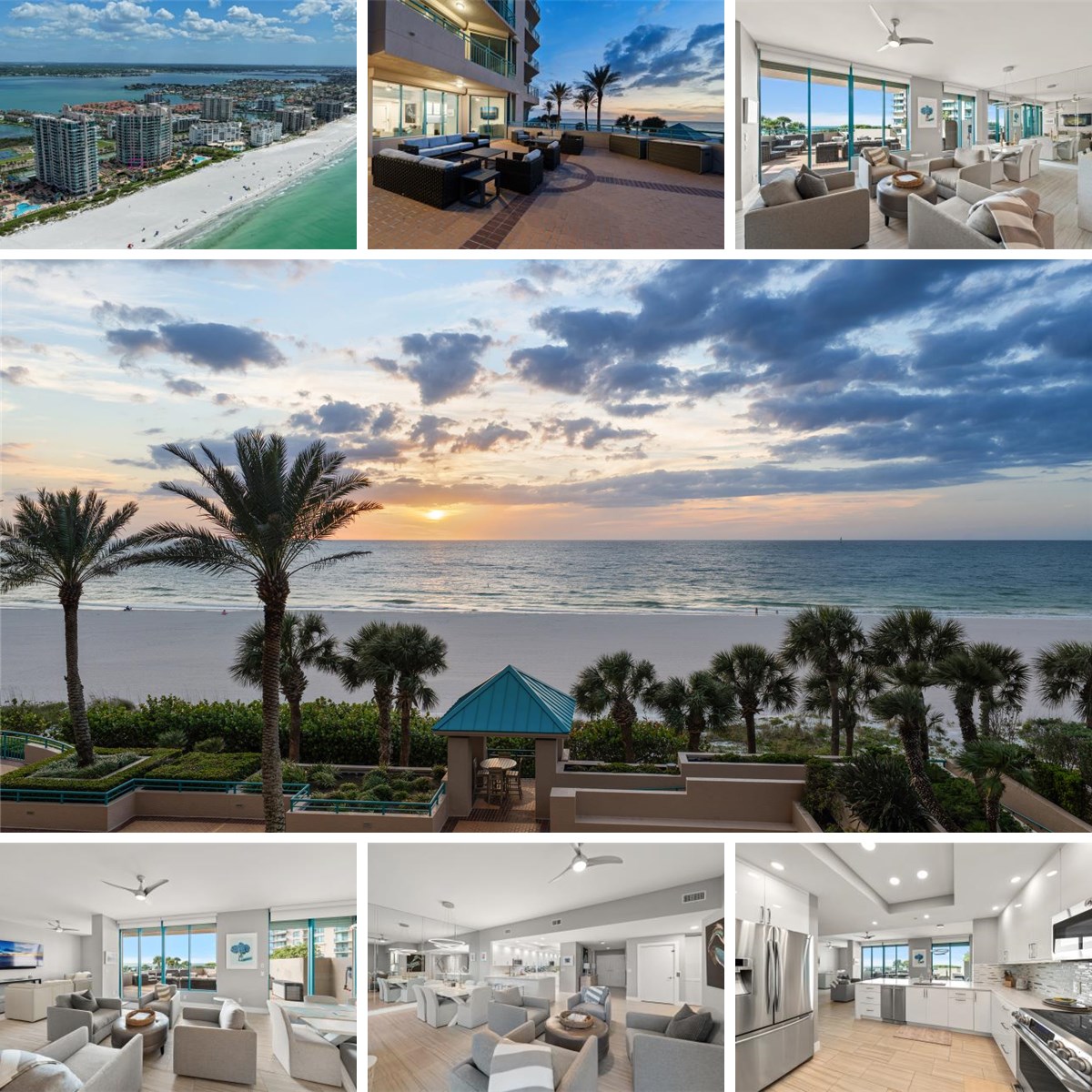 Welcome to this truly rare opportunity, a stunning two-story residence in the exclusive, gated Ultimar III community on Sand Key, where resort-style living blends seamlessly with breathtaking Gulf-front beauty. This desirable third-floor condo offers a thoughtfully designed floorplan with mesmerizing Gulf views from nearly every room. The heart of the home is a gleaming white kitchen, beautifully appointed with quartz countertops featuring a dramatic waterfall edge, stainless steel appliances, a pantry, and a breakfast bar, all seamlessly flowing into the dining and living areas for effortless entertaining. A cozy living room with a wet bar enhances the inviting ambiance, while walls of sliders open to an expansive terrace, capturing endless Gulf vistas and unforgettable sunsets, with convenient, private access to the pool and beach. A full bath completes the main level, while a private in-unit elevator or staircase leads to the second floor. There, double doors reveal a luxurious primary suite where you can wake each morning to tranquil water views. The spa-like ensuite is a true retreat, showcasing a double sink vanity with LED mirrors, two walk-in closets with built-ins, a soaking tub, and an indulgent steam/sauna room. Additional bedrooms are equally refined, each offering private balconies with water views and sharing a beautifully designed bath with a walk-in shower. Motorized blinds throughout this level add comfort and convenience. Residents of Ultimar III enjoy exceptional amenities including multiple resort-style pools, tennis and basketball courts, a putting green, outdoor grilling areas, a fire pit, and elegant media and entertainment spaces. Perfectly located near the pristine shores and just minutes from the vibrant offerings of Belleair Bluffs and Clearwater Beach, this move-in ready coastal retreat offers the rare opportunity to live like you’re on vacation every single day. Minimum 3 month with a 6 month or 12 month, rental option.